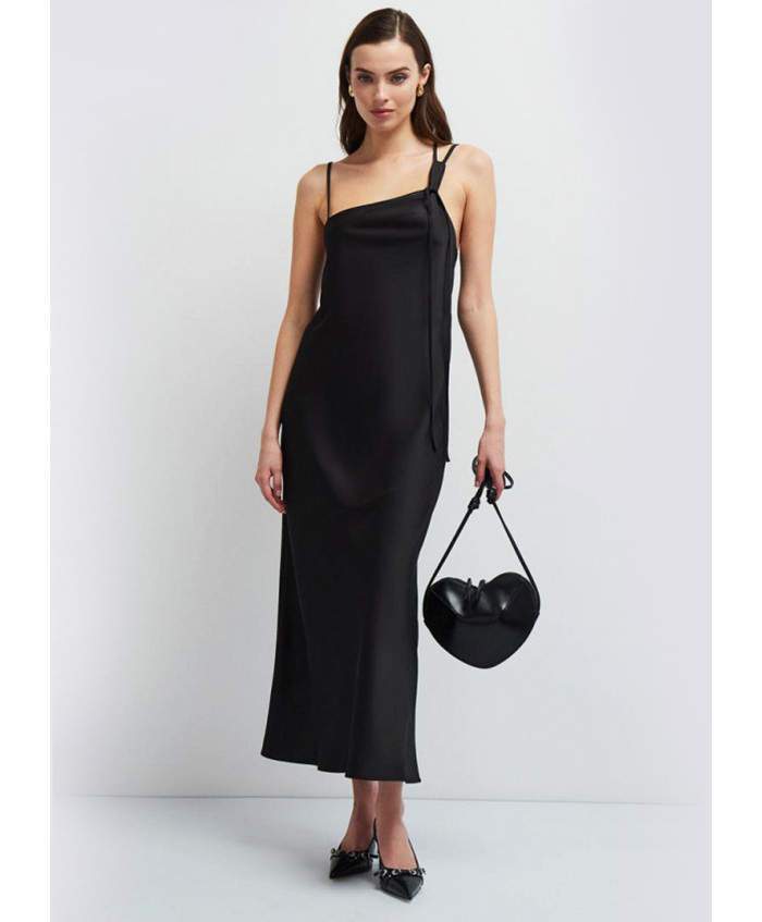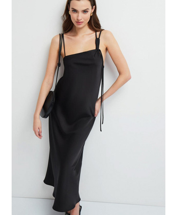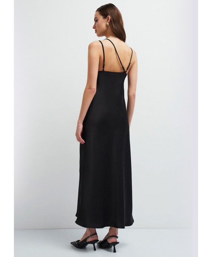 Сукня в білизняному стилі зі штучного шовку. Силует sleep dress приталений, спідниця трохи розширюється до низу. Підкладка з основної тканини майже по..