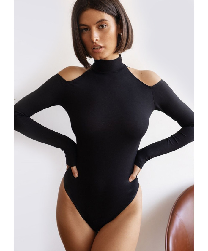 Бавовняний боді чорного кольору з вирізом.