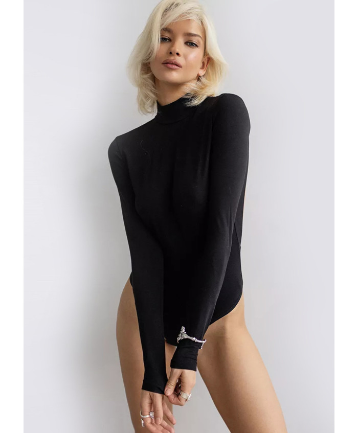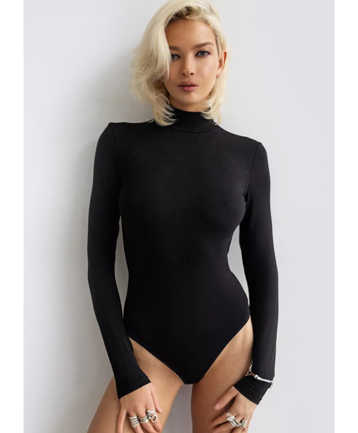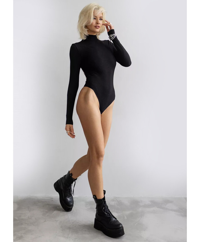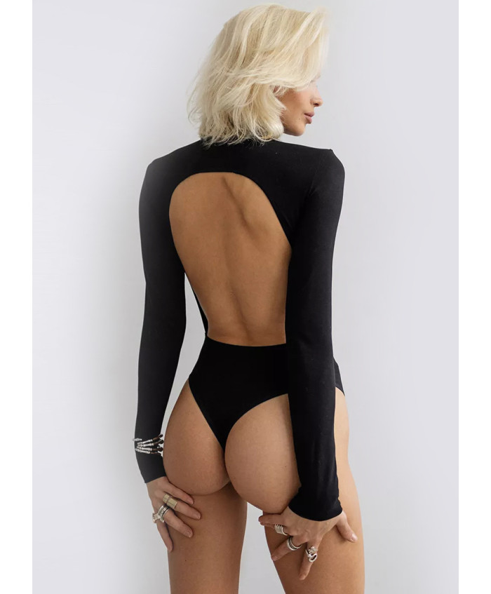 Бавовняний боді чорного кольору з відкритою спиною.Сертифікована бавовна з еластаном добре тягнеться та тримає форму.Виріз трусиків закритий - стрінги..