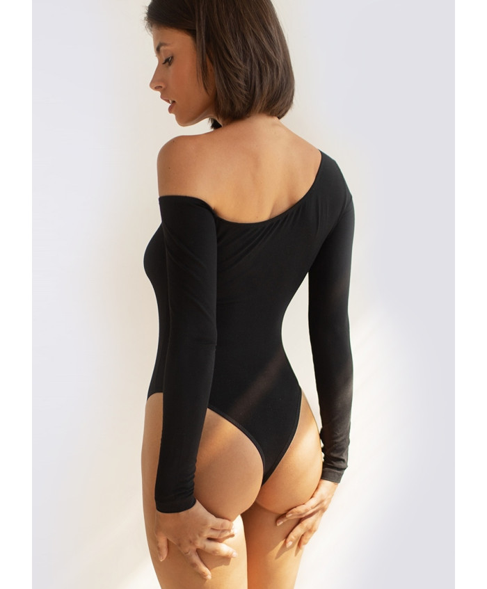 Бавовняний боді чорного кольору з вирізом.Сертифікована бавовна з еластаном добре тягнеться та тримає форму.Виріз трусиків закритий - стрінги.Виробниц..