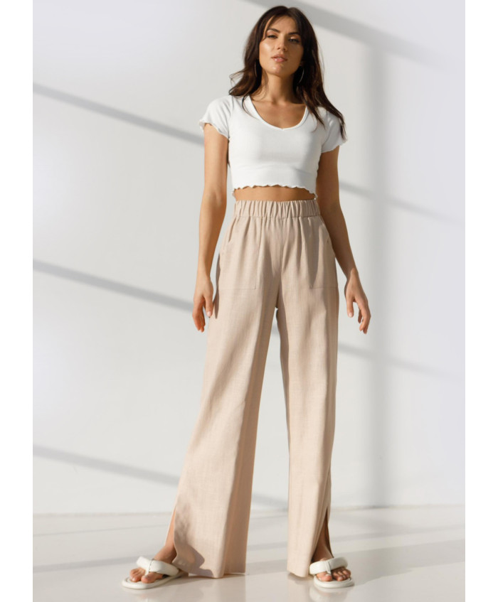 Брюки лляні з розрізами, бежеві