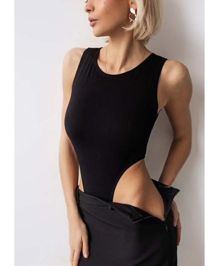Бавовняний боді чорного кольору з вирізом.
