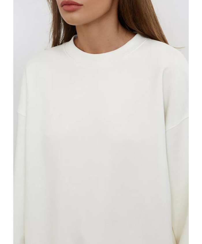 Жіночий світшот виконаний з трикотажу - футер двонитка, без начісу з виворітного боку. Крій класичний, подовжений. Силует оверсайз. Лінія пл..