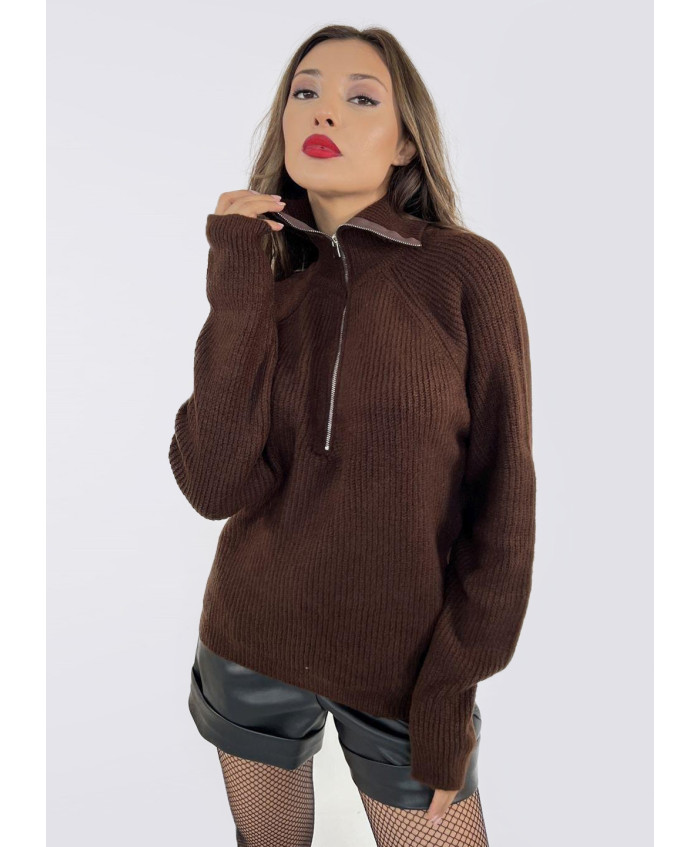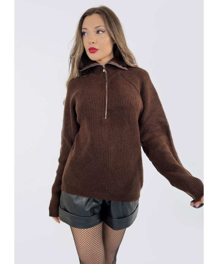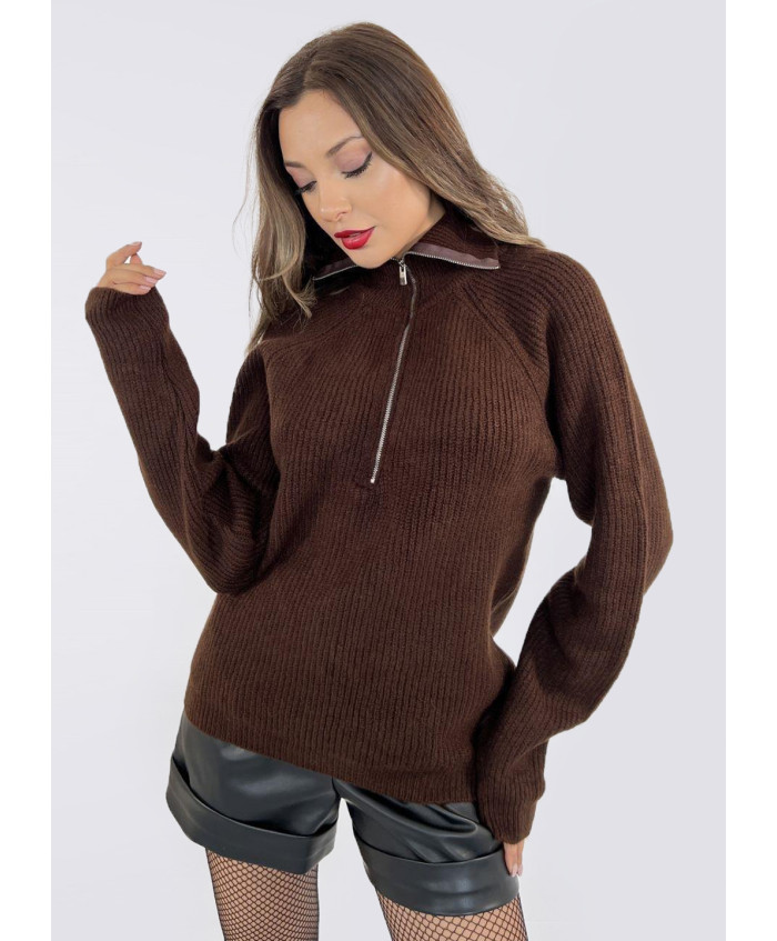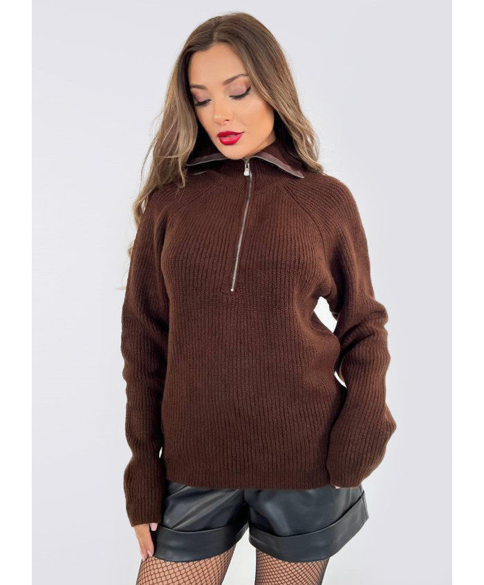 Теплий жіночій светр з вязаного трикотажу. Комірець стійка, на блискавці.