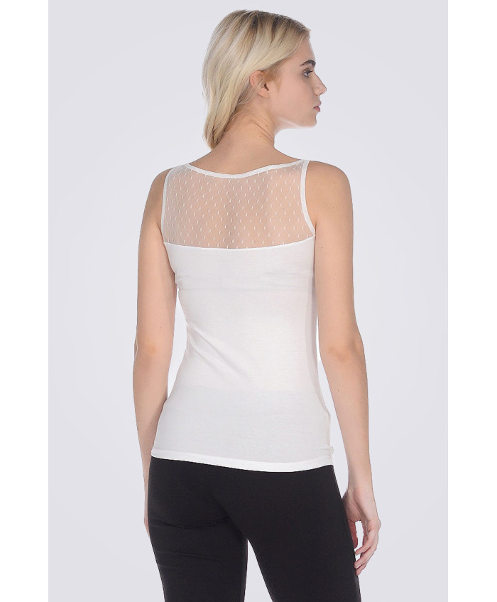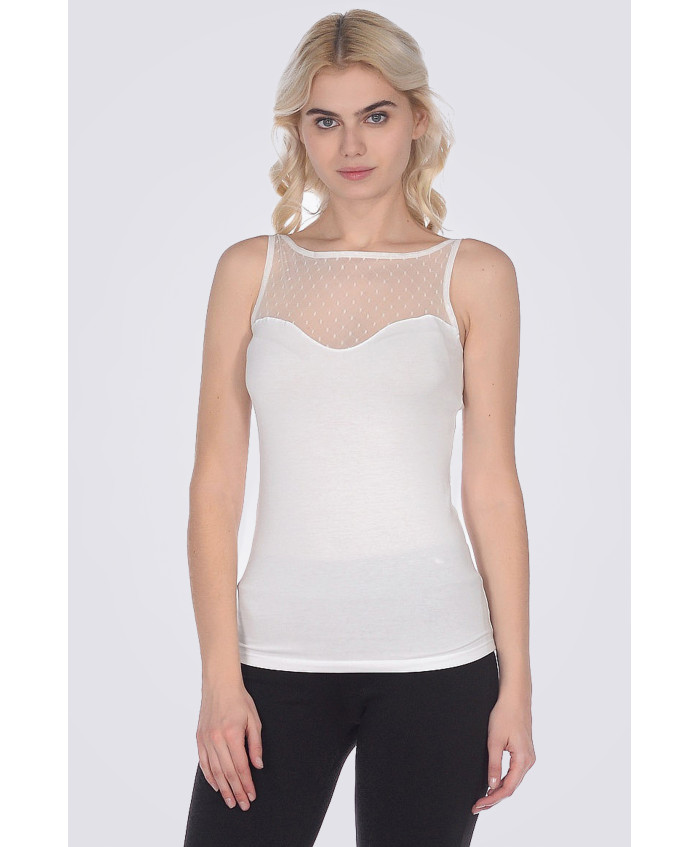 Жіноча майка Doreanse без рукавів. Виріз горловини - човник, напівпрозора вставка сіточкою прикрашає декольте і верхню частину спинки. Актуальний мода..