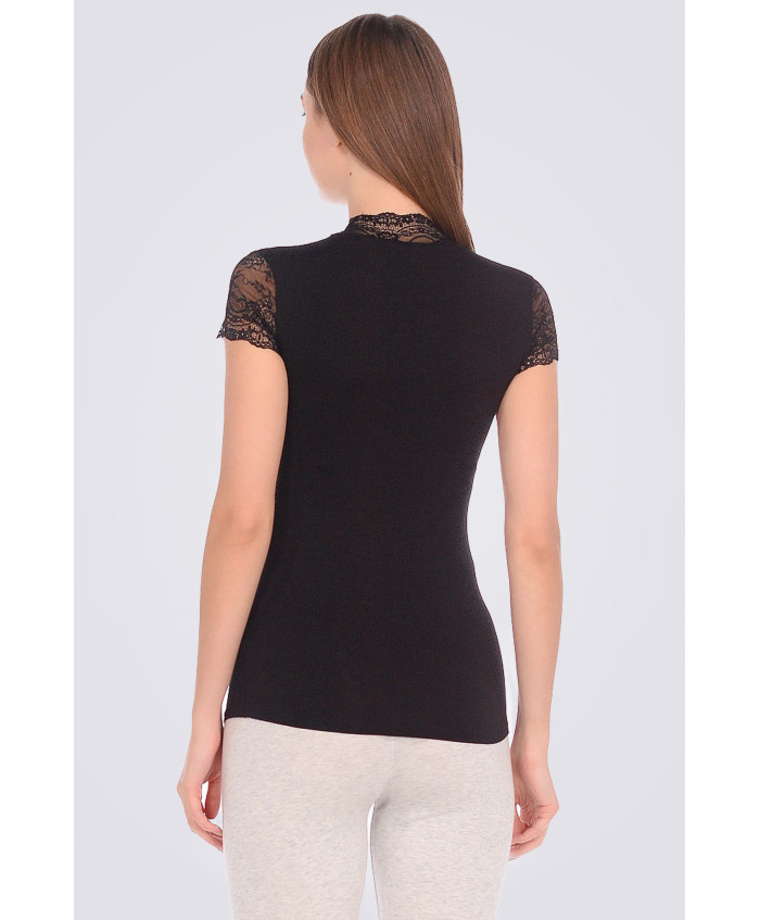 Жіноча футболка Doreanse c невеликим мереживним рукавом. Комір стійка виконаний з гіпюру. Актуальний модал в складі тканини робить виріб комфортним, п..