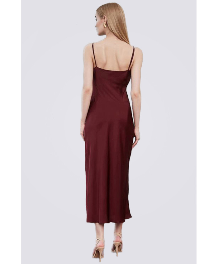 Сукня в білизняному стилі зі штучного шовку. Силует sleep dress приталений, плавний V-подібний виріз, спідниця трохи розширюється до низу. Є коротка о..