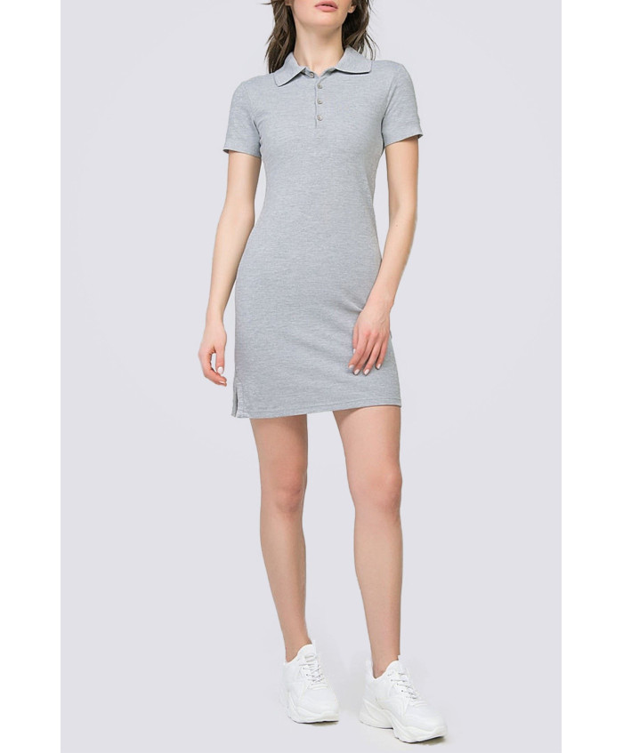 Сукня поло вільного злегка приталеного силуету. Виконано з тканини Лакоста з характерним для теніс поло плетінням.