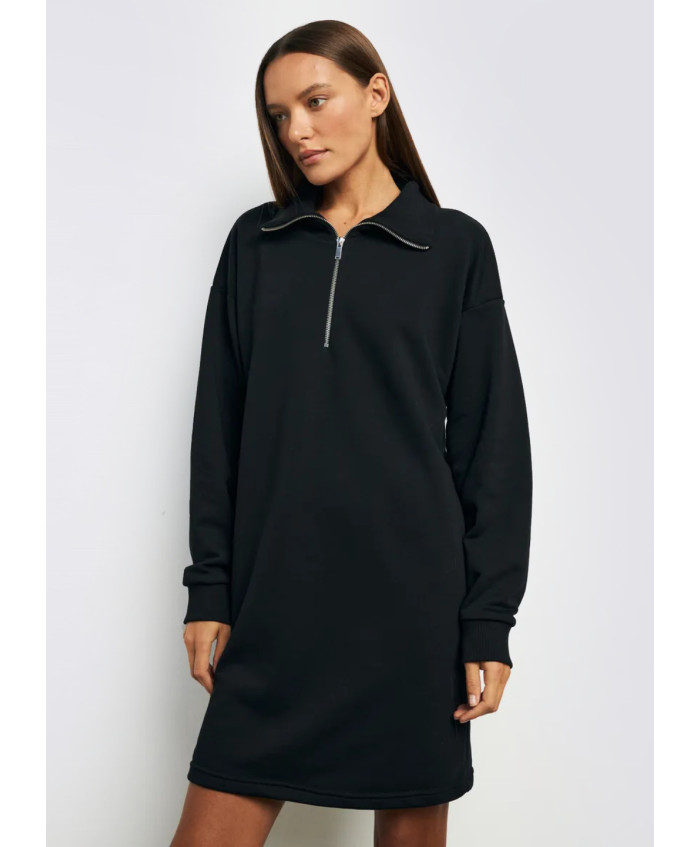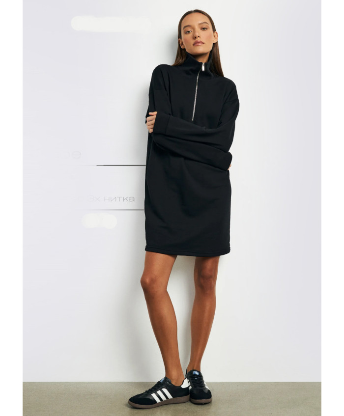 Сукня - светр, виконана з трикотажу - футер тринитка, з начісом з внутрышнього боку. Силует оверсайз. Лінія плеча опущена. Рукав та високый комр обібр..