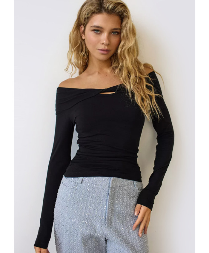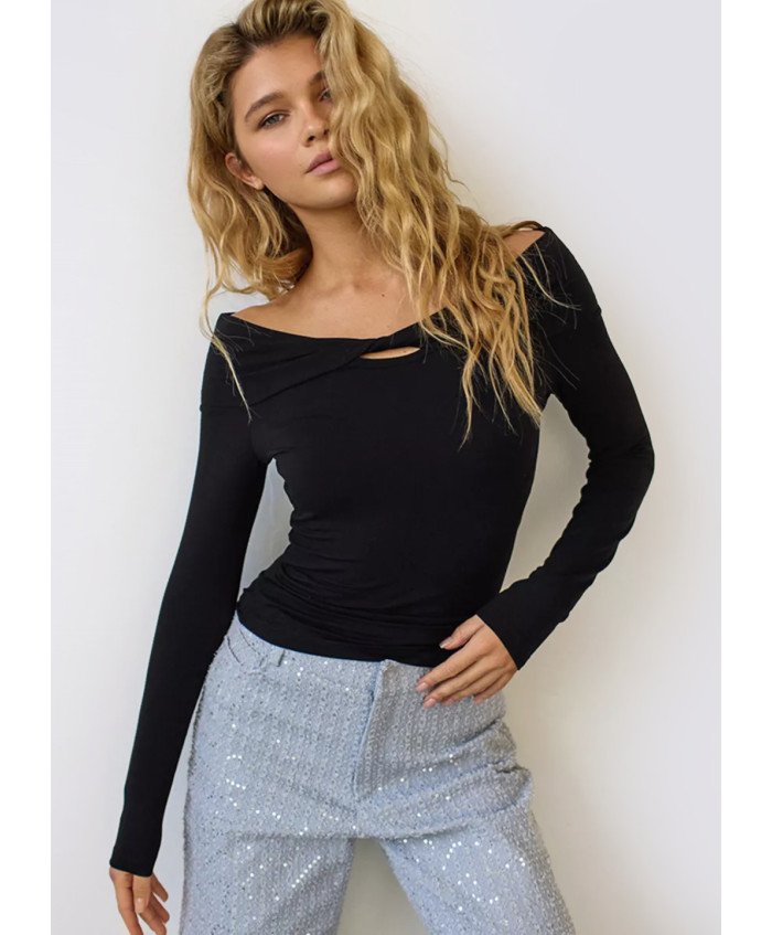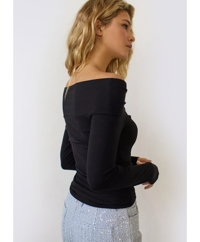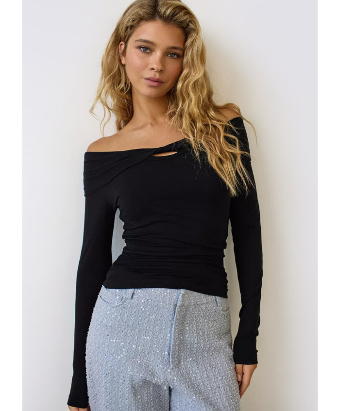 Жіночий лонгслів виконаний із бавовняного трикотажу. Силует приталений.