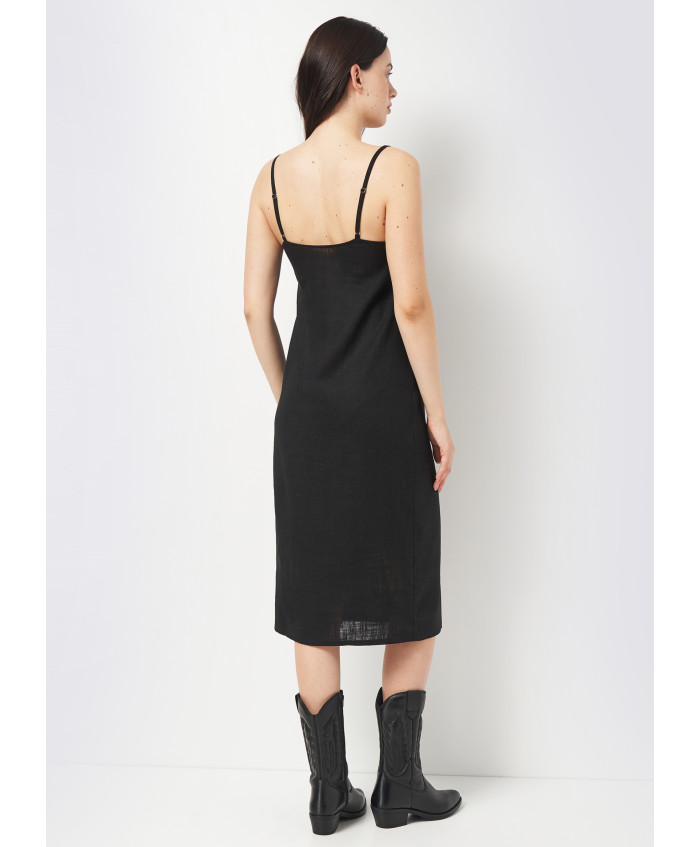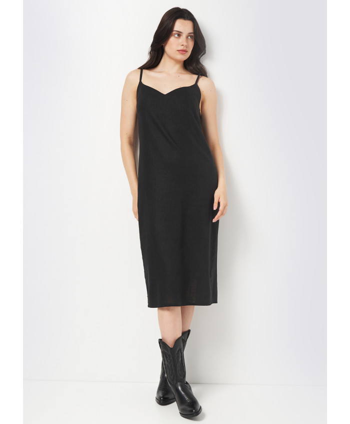 Літня сукня простого силуету із полегшеного льону. Ідеально для спекотного літа. Силует вільний, трохи приталений. Тонкі бретелі регулюються. Довжин..
