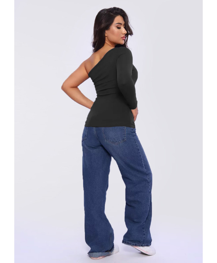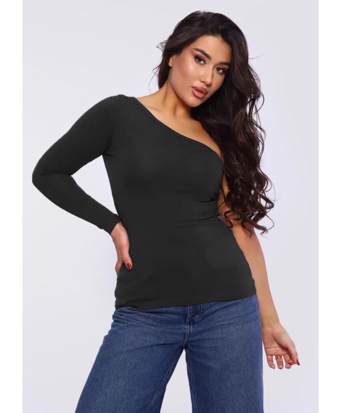 Жіночий лонгслів виконаний із бавовняного трикотажу. Силует приталений.Асиметричний виріз на одне плече. 95% бавовна / 5% еластан Розмірна с..