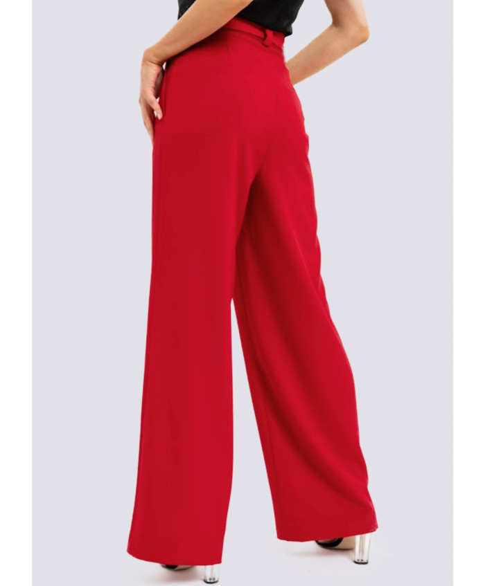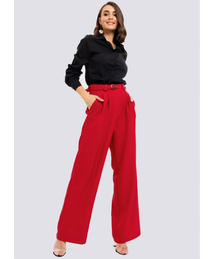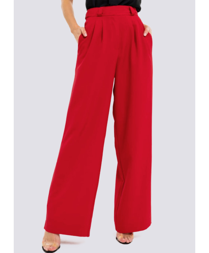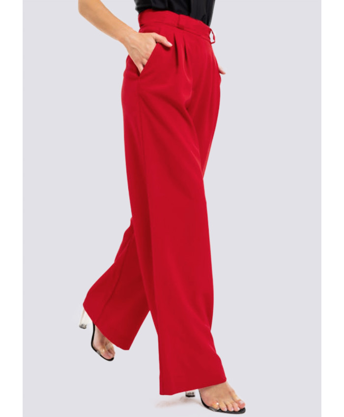 Штани широкі, спереду складки, а також бічні кишені. Ззаду виточення. Потайна блискавка у боковому шві.