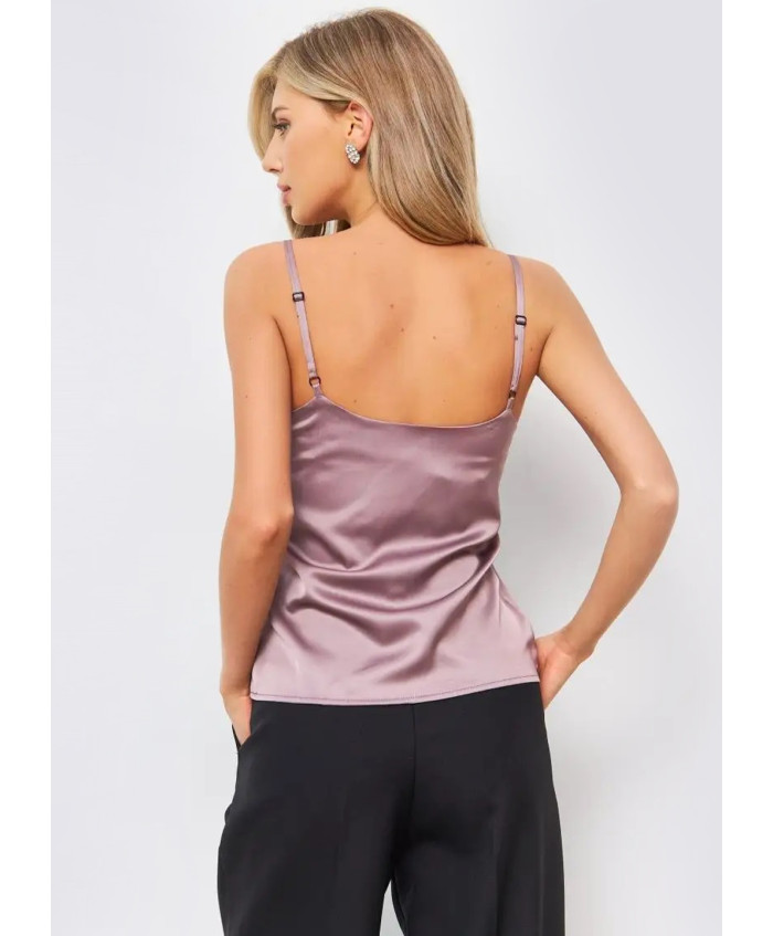 Топ у білизняному стилі зі штучного шовку. Силует рівний, злегка приталений, плавний V-подібний виріз.