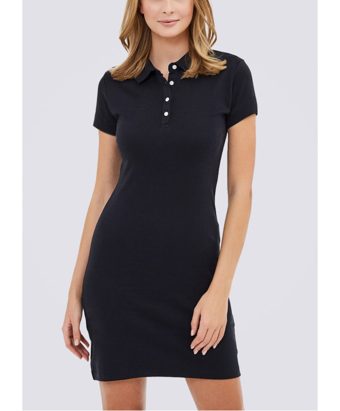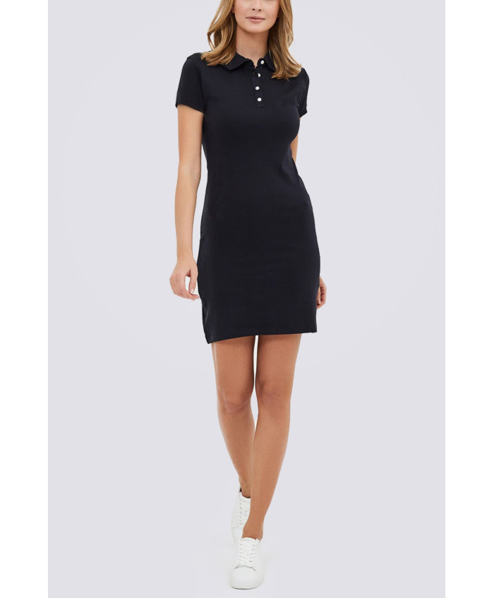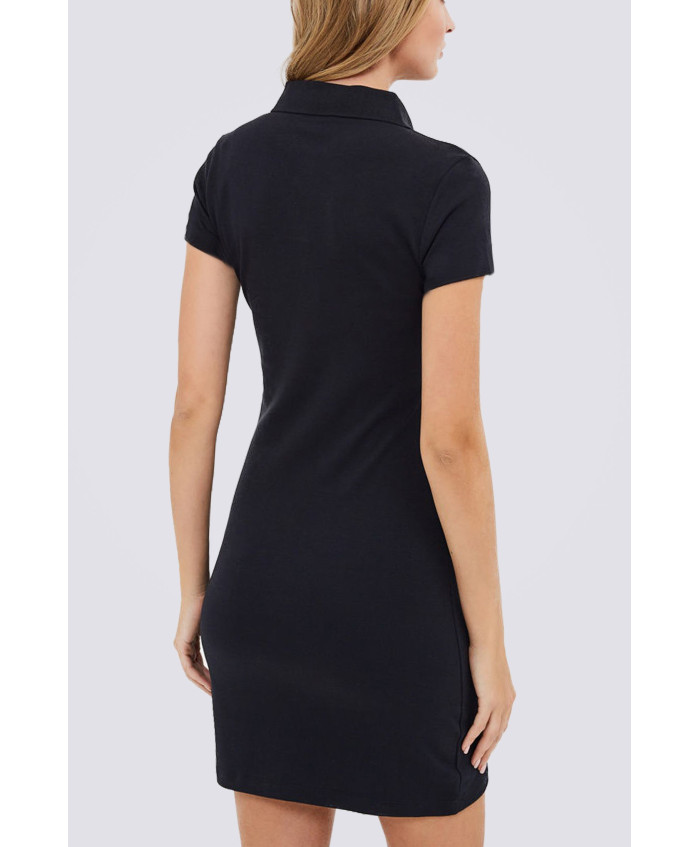 Сукня поло вільного злегка приталеного силуету. Виконано з тканини Лакоста з характерним для теніс поло плетінням.