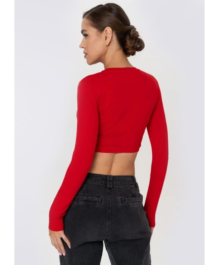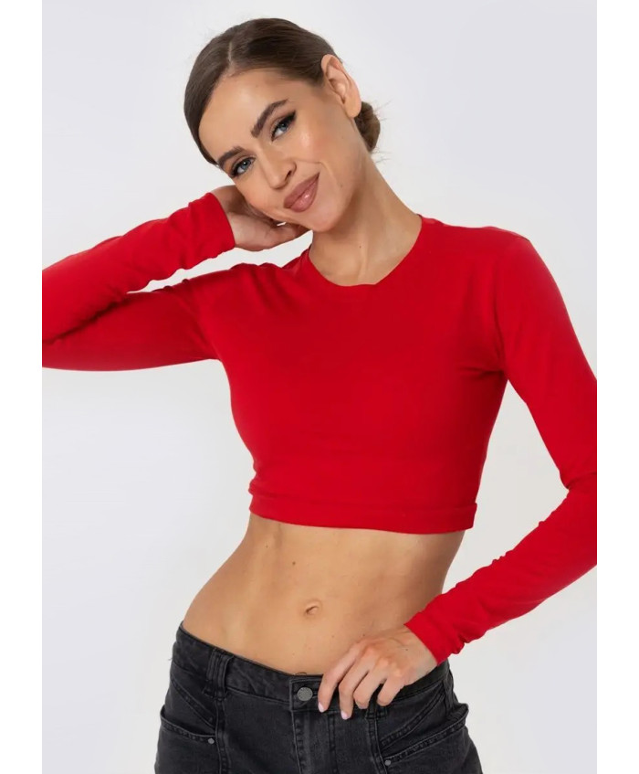Вкорочений трикотажний топ з довгим рукавом та комірцем стійкою. ВиробництвоУкраїнаСклад95% бавовна / 5% еластан..