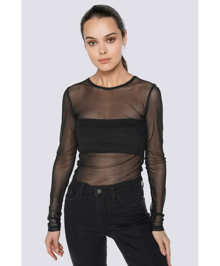 Кофта-сіточка з довгим рукавом і круглим вирізом.