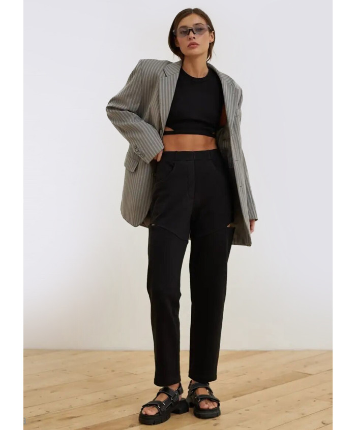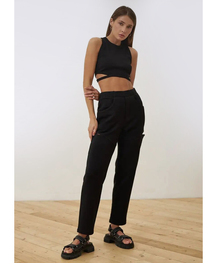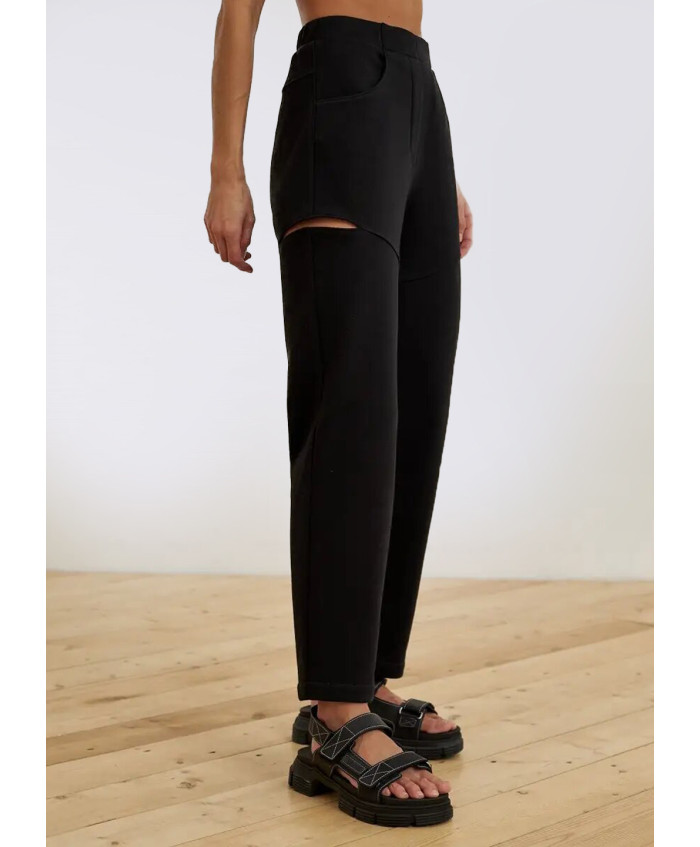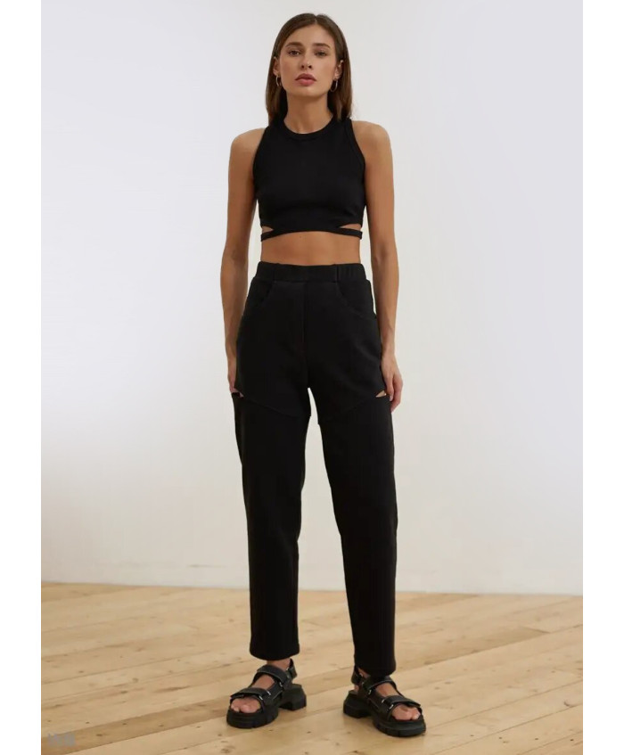 Жіночі штани виготовлені з бавовняного трикотажу - футер, двонитка без начісу. Пояс на резинці. Декоративні вирізи.